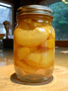 . Elmaları tamamen örtecek ve tepede 1,5 cm. boşluk kalacak biçimde, kaynar şeker şurubu konarak kavanozlar kapatılır.