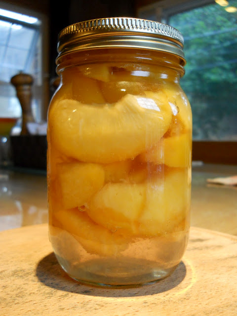 Sıcak usulle doldurulacaksa; önceden hazırlanan ve kaynamakta olan şeker şurubunun içine dilimlenmiş şeftaliler atılır. Şurup tekrar kaynamaya başladığı anda delikli bir kepçeyle çıkarılarak kavanozlara yerleştirilir. Kaynar haldeki bu şurup da tepede 1,5 cm. boşluk kalacak ve şeftalileri tamamen kapatacak şekilde üzerine ilave edilip, kavanozların ağzı ıslak ve temiz bir bezle silinir, sonra kapakları sıkıca kapatılır.